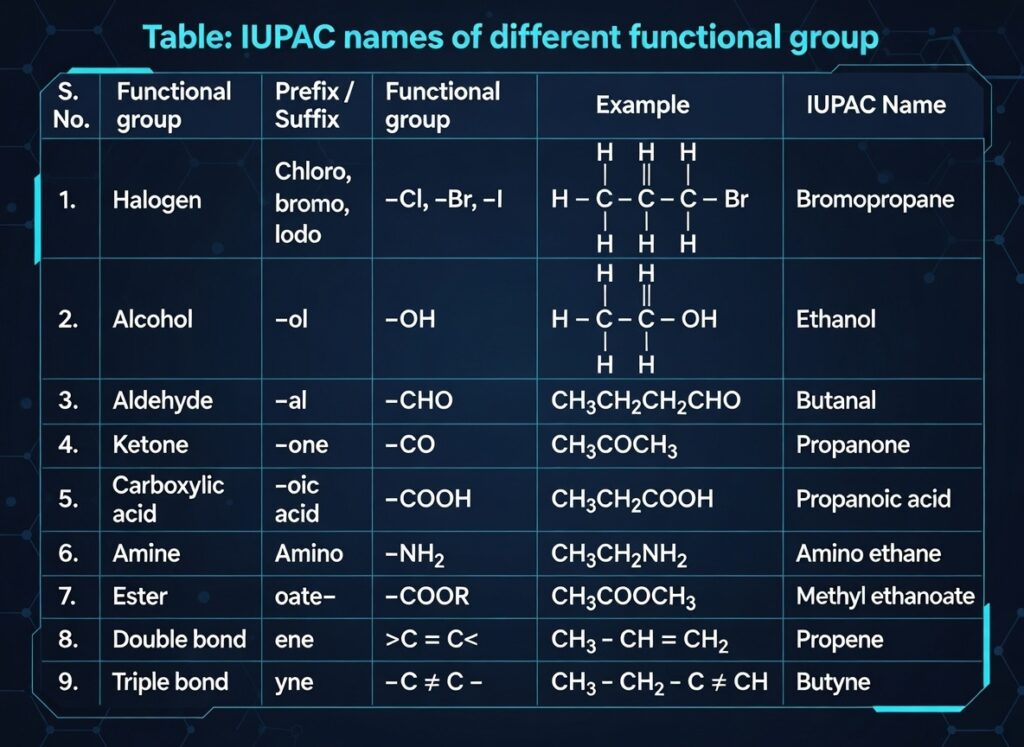 - Functional group: Determines properties (–OH alcohol, –COOH carboxylic acid, etc.).