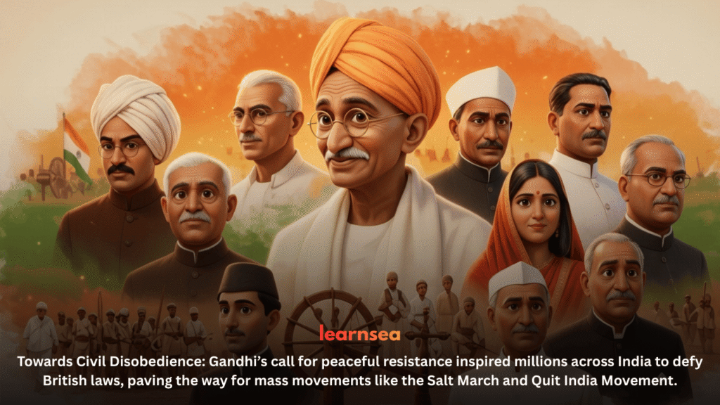 Key early movements include the Champaran Satyagraha (1917) against oppressive plantation systems, the Mill Workers’ Movement in Ahmedabad (1918), and the Kheda Peasant Movement (1918). These campaigns demonstrated the power of peaceful mass mobilization in challenging British authority.