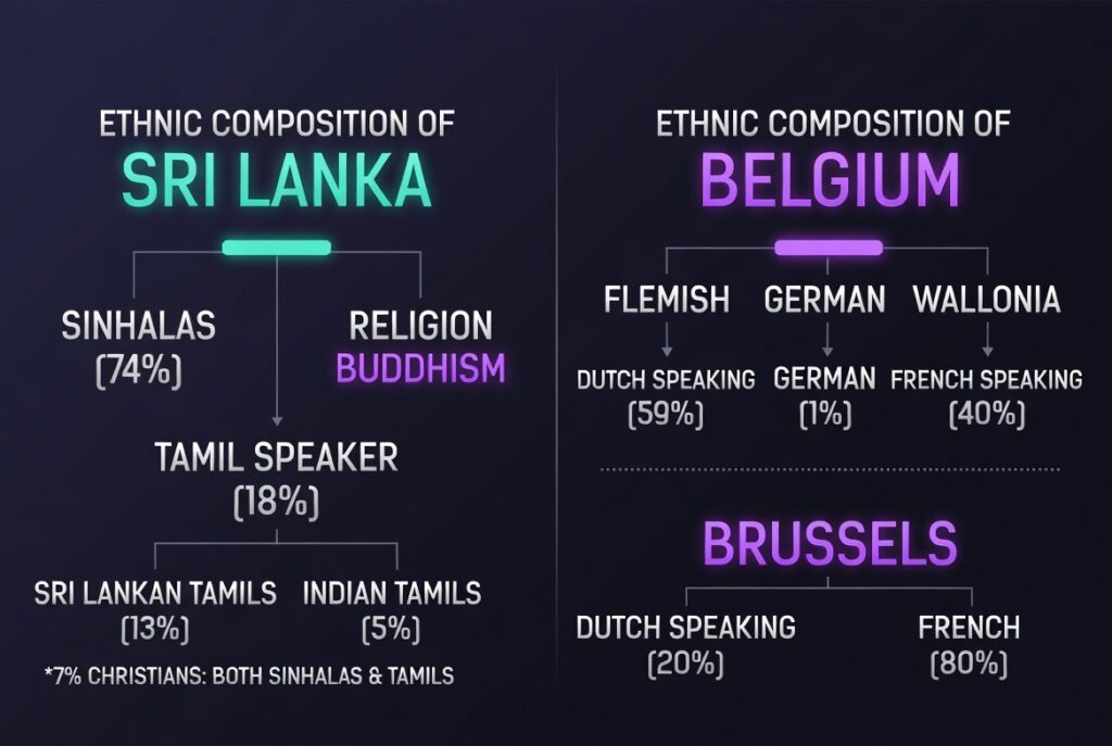 The ethnic composition of Belgium and Sri Lanka